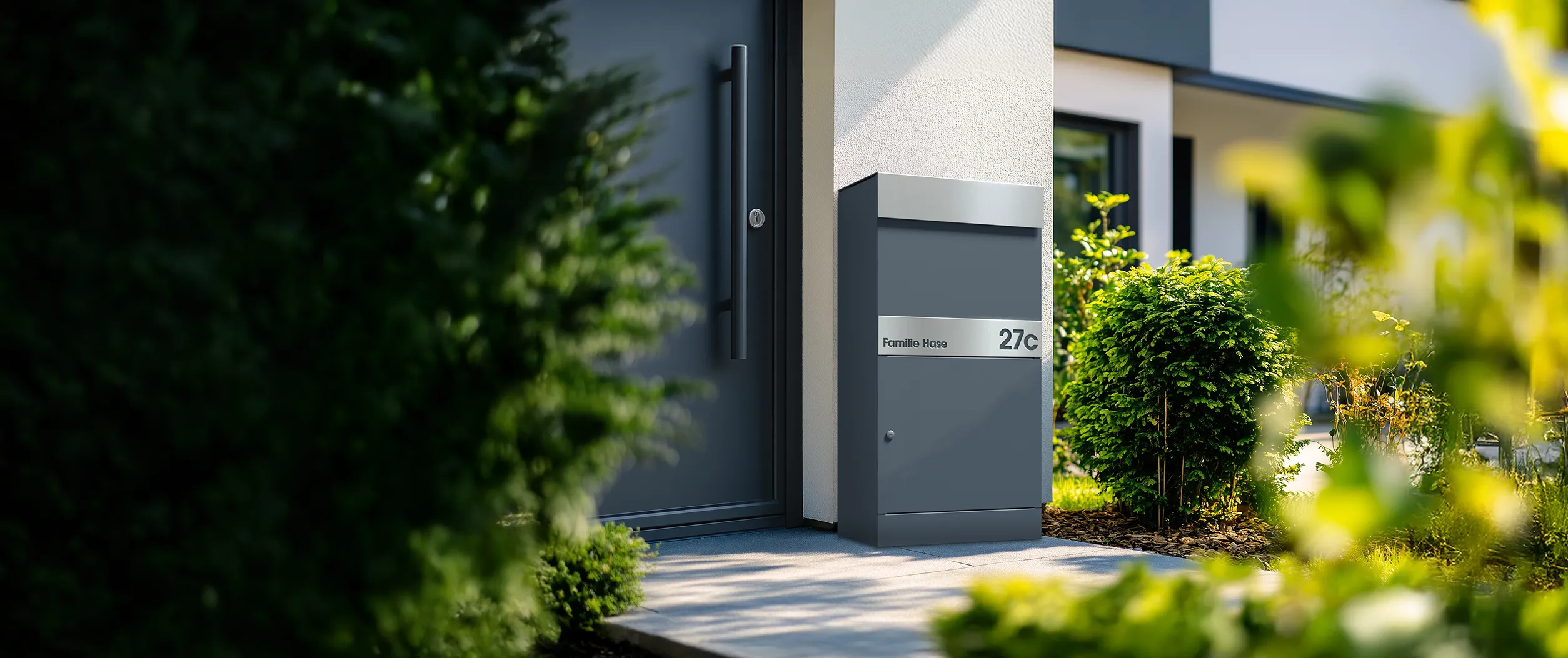 Die optionale Beschriftungsblende bietet Ihnen besonderen Gestaltungsspielraum. Individuell versehen mit Name und Hausnummer, verleiht sie der Box einen unverwechselbaren Charakter und perfektioniert das Gesamtbild Ihres Entrées.