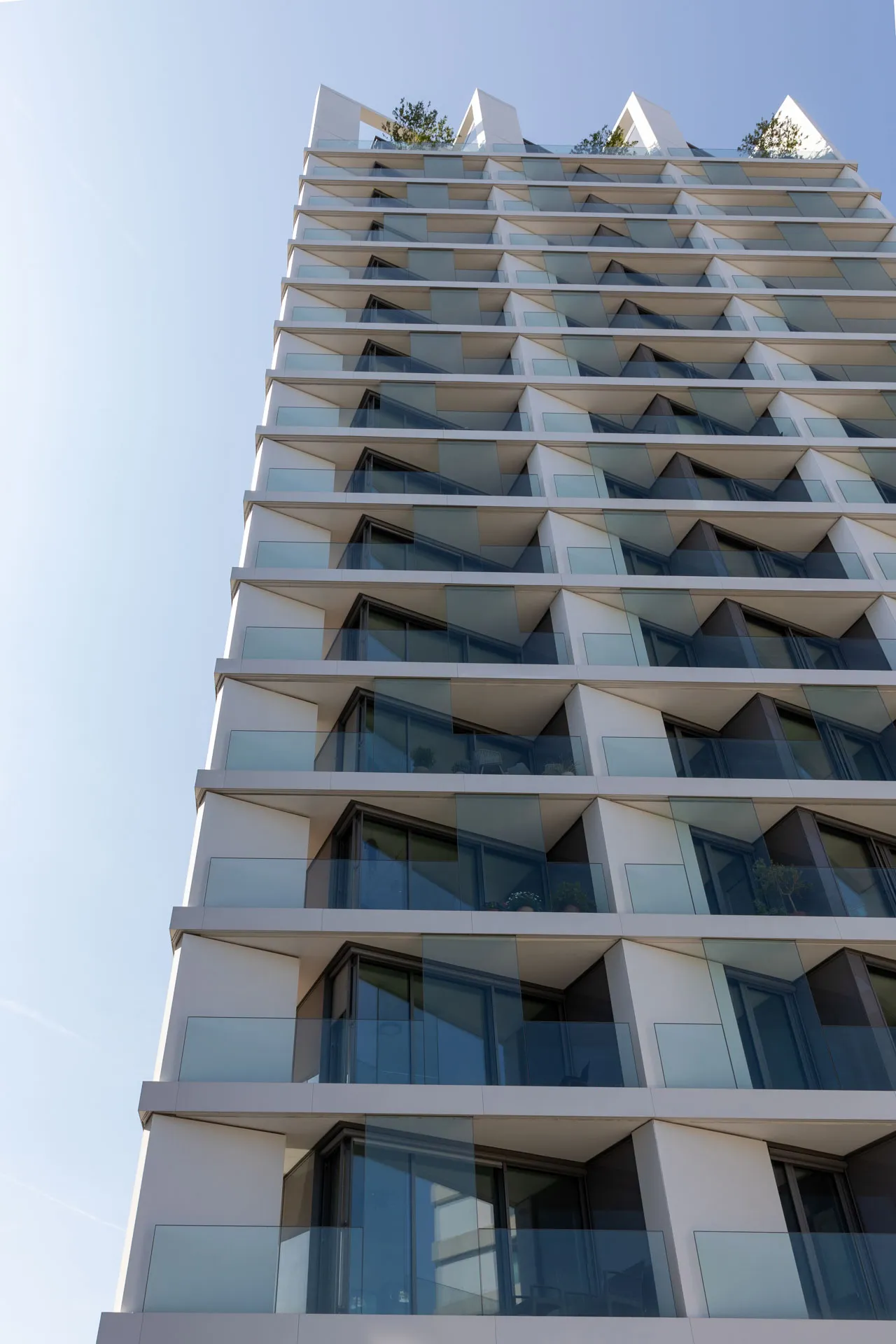 Der Wohnturm THE CROWN am Hamburger Strandkai prägt mit 58 Metern Höhe die Skyline der HafenCity. Großzügige Glasfassaden öffnen den Blick auf Elbe und Hafen. THE CROWN bietet mit 75 luxuriösen Wohnungen höchsten Wohnkomfort in einer außergewöhnlichen Lage direkt am Wasser.